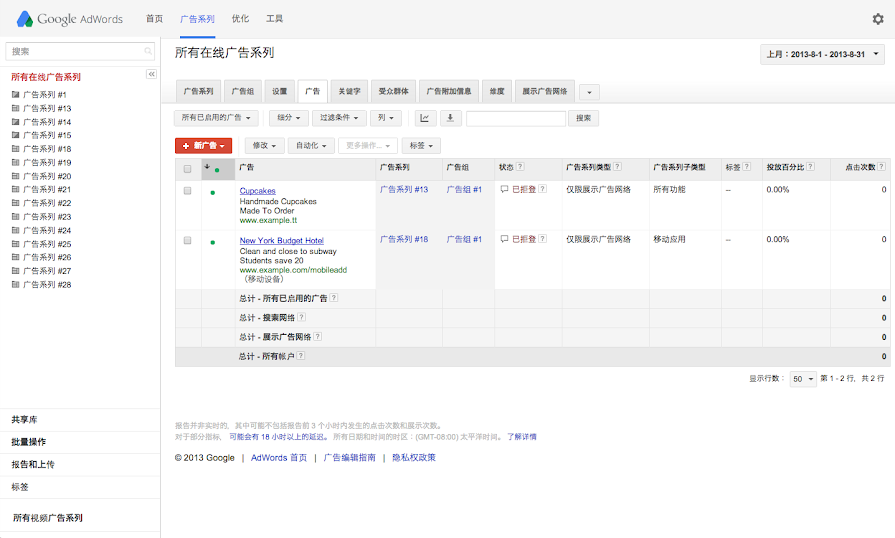 - 点击广告标签。您看到的表格应该会列出该广告系列所包含的所有广告。