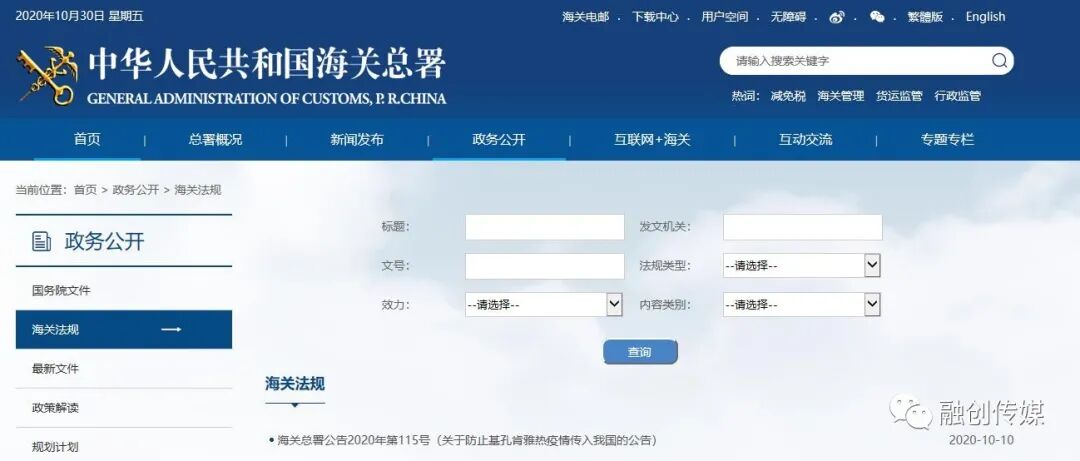 5.http://www.customs.gov.cn/customs/302249/302266/index.html