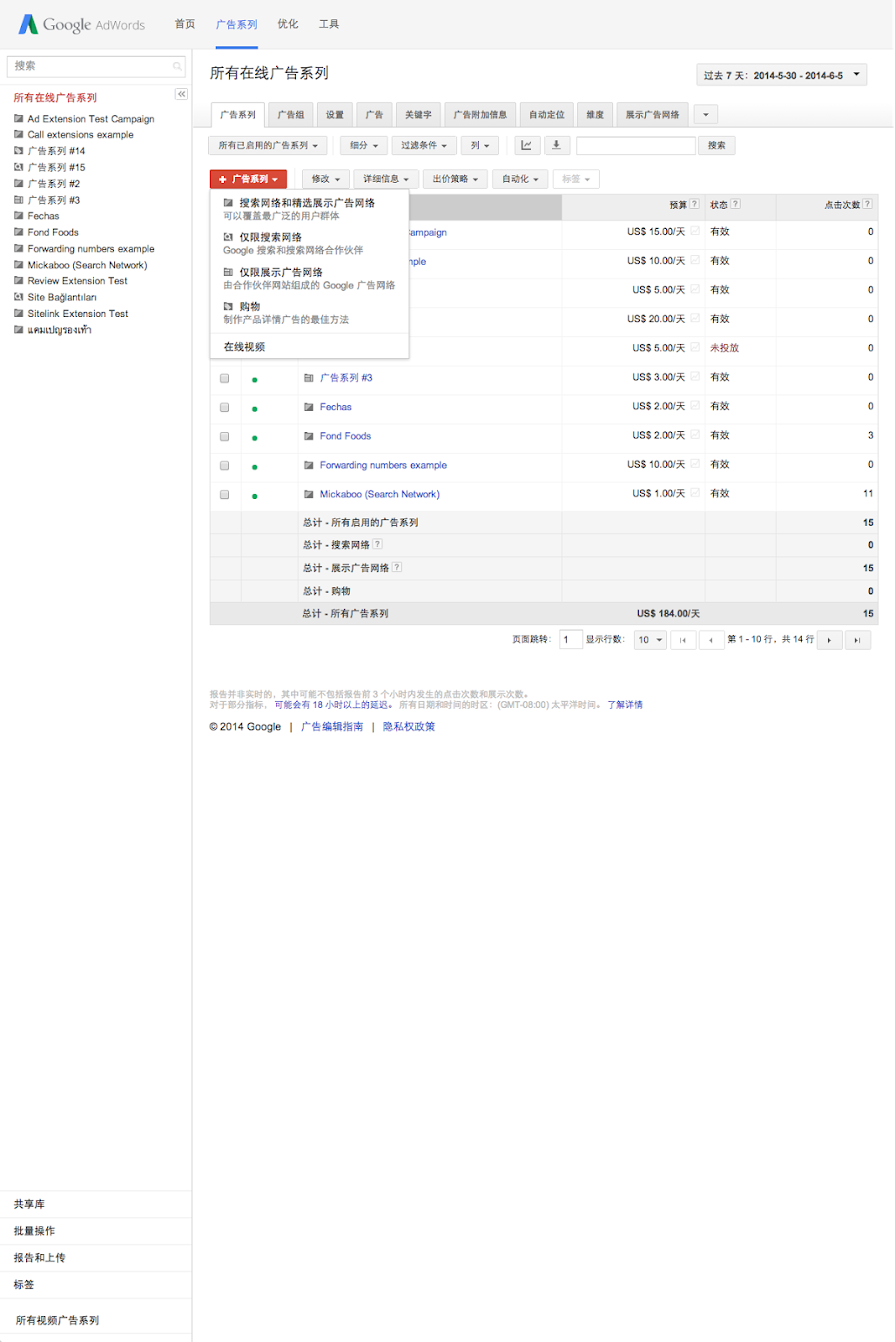 广告系列是一组相关的广告组,通常用来将您所提供的产品或服务按类别组织起来。在帐户中制作广告之前,您必须至少先制作一个广告系列。
