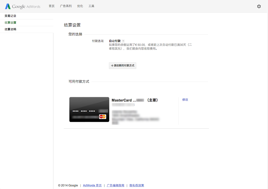 当前所在位置: 首页 » 文档帮助中心 » 谷歌adwords相关问题 » 结算 » 更改结算频率