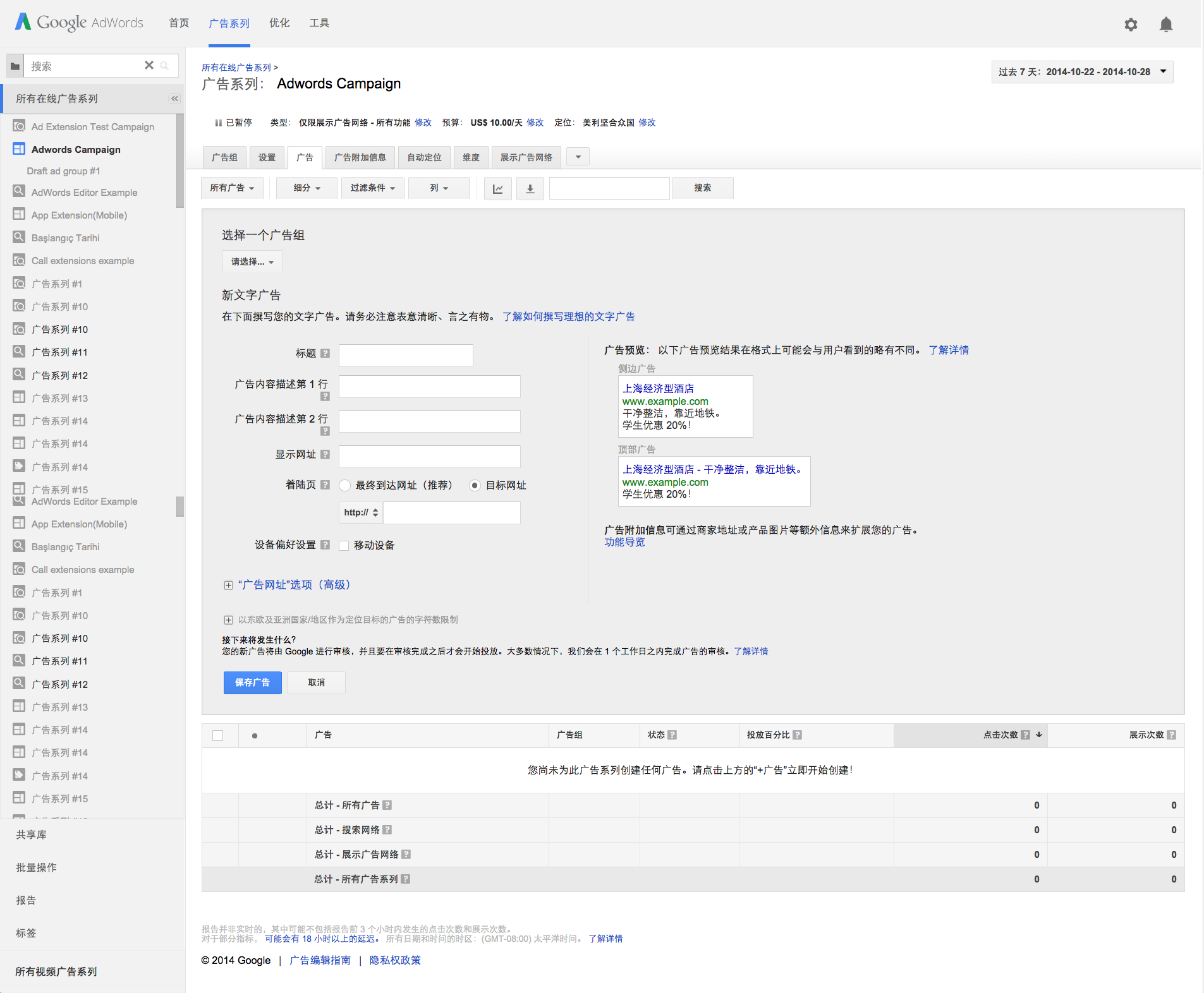 您可以使用 AdWords 编辑器等其他工具在多个广告组或广告系列中制作并管理广告。详细了解 Google 提供的适用于拥有多个帐户或拥有大型帐户的广告客户的工具。如有任何疑问,请与我们联系