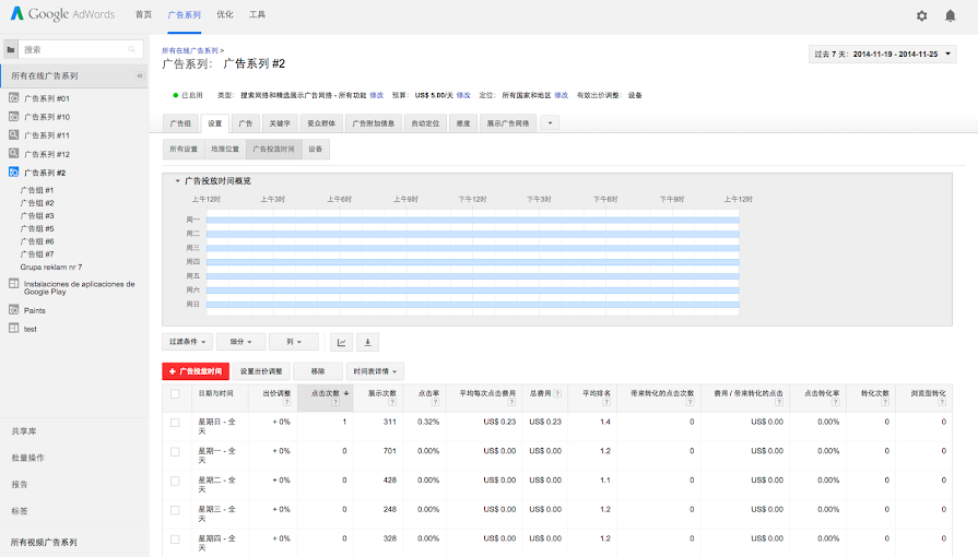 - 点击保存。您将在广告投放时间统计信息表格中看到相应变化。
